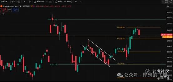 五、AMZN: 去年年底已经反复提及。向上趋势已定 (2026年2月5日盘后))走势预判:慢牛向上,