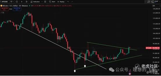 1、下图中的绿色楔形,若是在此处形成挤压,已经突破,1月15日的《加mi市chang结构F案》可能会是催化剂。