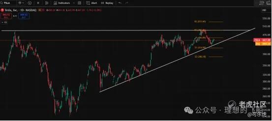 三、TSLA 挤压楔形整理中,短期站稳461会强势(财报:2026年1月28日 )