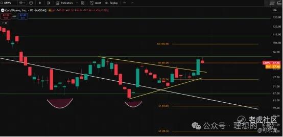 十一、CRWV:突破挤压形态了。走势预判:短期内92.6处有压力,81.3的支撑很强。