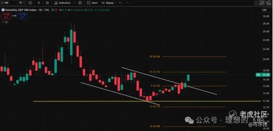 6、VIX标普500波动率:已经突破“下跌通道”上方压力17.7。