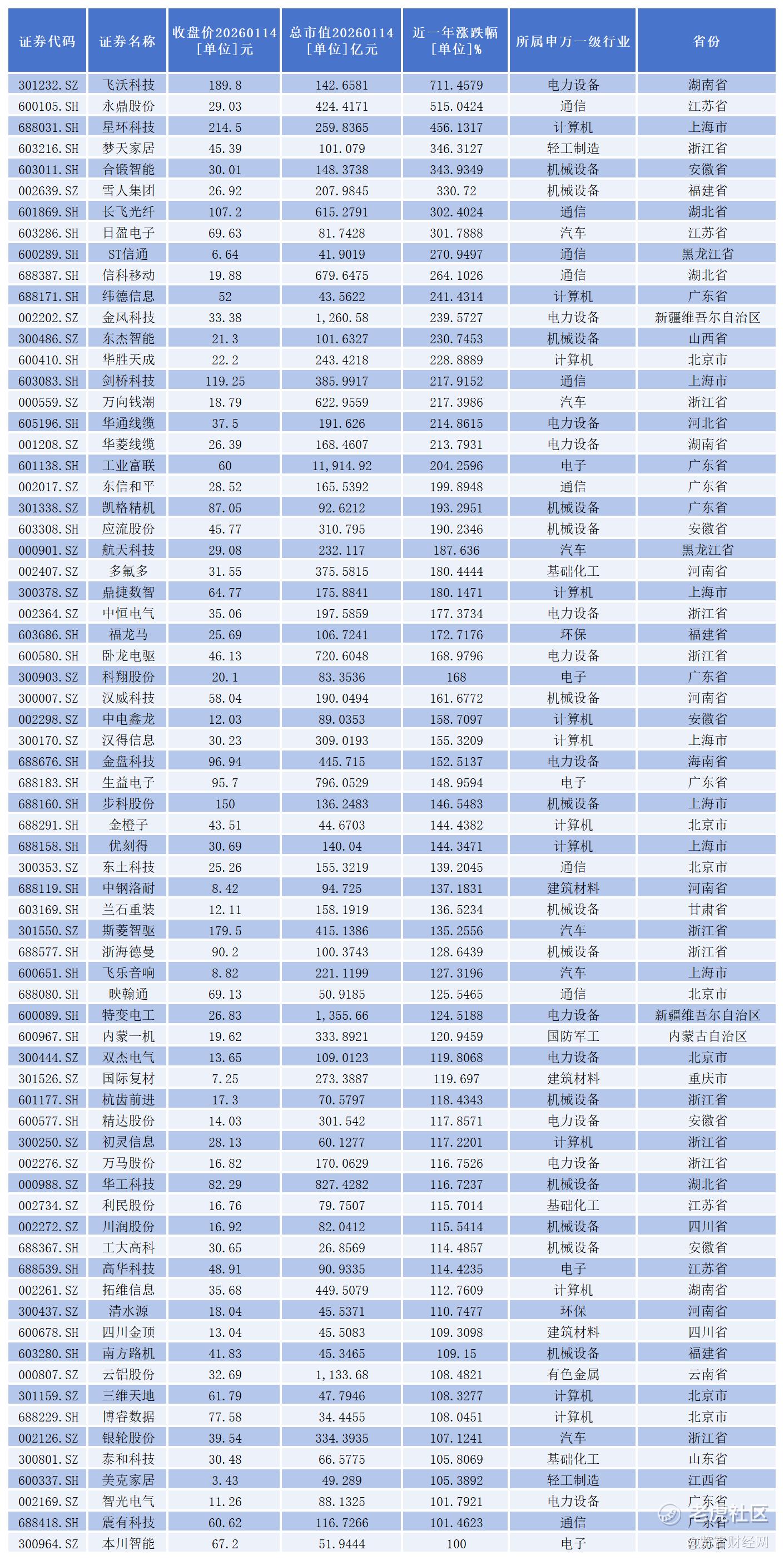 从二级市场表现看,70只个股近一年涨幅成功实现翻倍。 $飞沃科技(301232)$ 、永鼎股份(600105.SH)、星环科技(688031.SH)、梦天家居(603216.SH)、合锻智能(603011.SH)、雪人集团(002639.SZ)、长飞光纤(601869.SH)、日盈电子(603286.SH)等8只个股涨幅超300%。