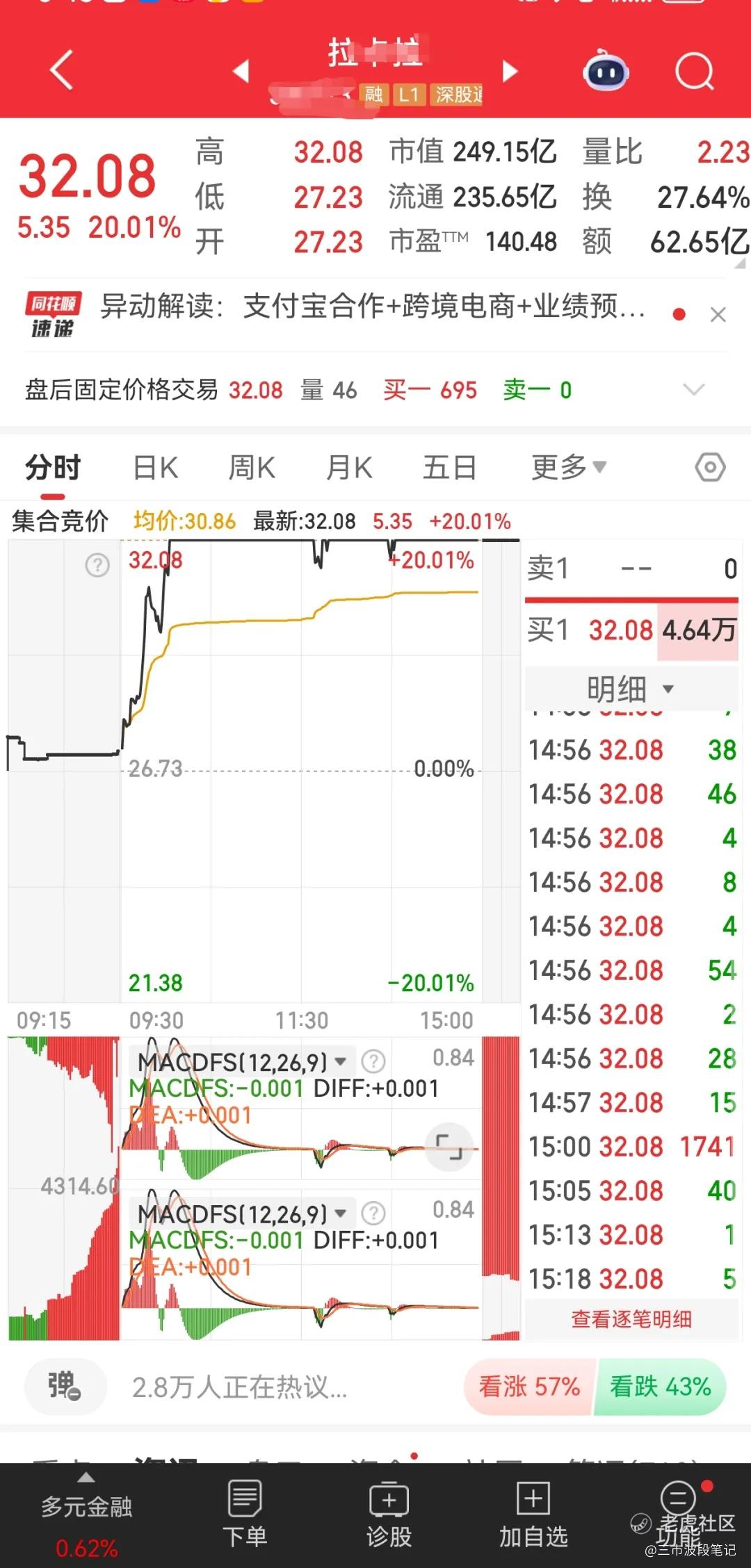竞价满仓金融科技,盘中仓位 9.8 成,尾盘减仓到 7 成,手上的标的基本没有受到跳水影响。