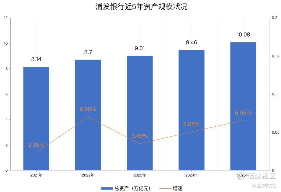 此前一日,浦发银行(600000.SH)率先发布2025年上市银行第一份业绩快报,同样截至2025年末,浦发银行的资产规模为10.08万亿元,同比增长6.55%。