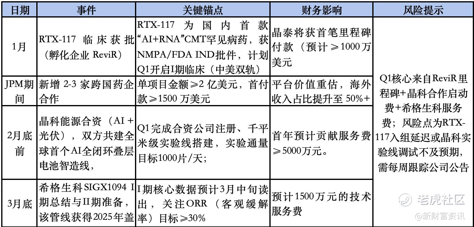 小新根据已有的管线情况和订单情况,整理了晶泰控股2026年的重大事件情况和关键锚点,供大家参考。