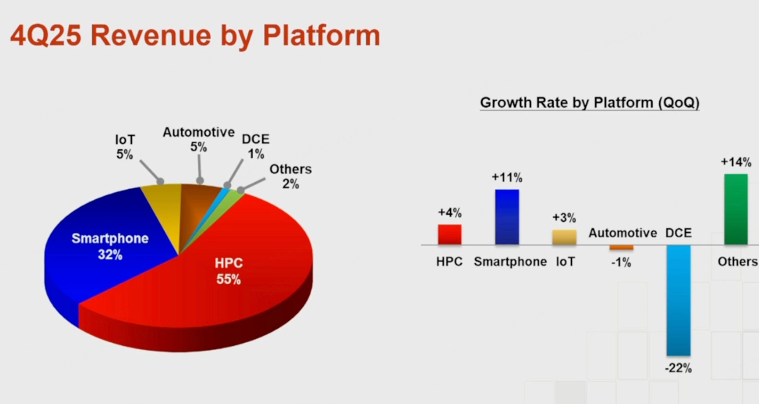 Q4 平台结构里,HPC 占比 55%,智能手机 32%。