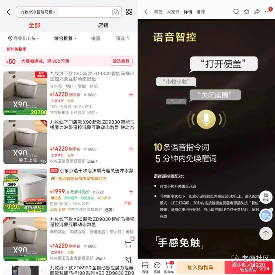 京东上,一款搭载鸿蒙系统的九牧X90智能马桶,折后售价高达14220元;而另一款名为“无感轻尿检智能马桶”的标价更是逼近两万元,限定于线下高端门店体验。这与其几百至几千元的主力产品区间,划出了一道泾渭分新的分界线。