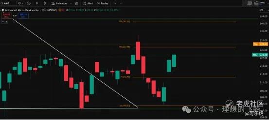 十四、AMD (优) 已经开启反弹,站稳227之后慢牛。