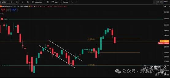 五、AMZN: 去年年底已反复提及,向上趋势已定,慢牛,有回调就买入。财报:2026年2月5日盘后