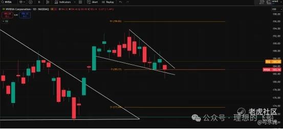 七、NVDA:小挤压楔形里整理中。183和173(铁低)的支撑都很强,方向暂不明朗,但也是底部了。财报:2026年2月25日盘后