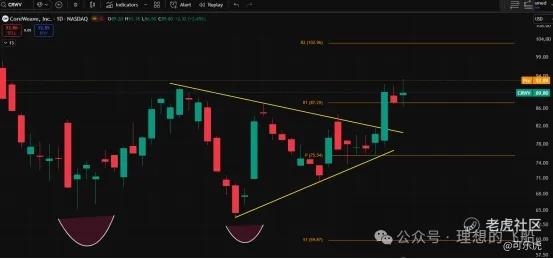 十一、CRWV:(优)突破挤压形态了。短期内102.9有压力,81.3的支撑很强。继续反弹