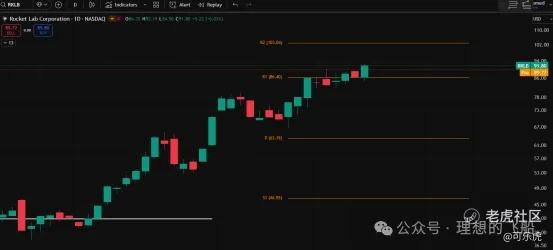 二十二、RKLB 上方压力92.2,如果突破的话,看到100以上。太空股强势,去年12月3开始推荐以来,ASTS、RKLB都涨得不错。