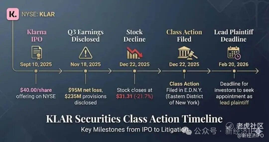 诉讼称:“自首次公开募股以来,由于Klarna的注册声明中遗漏了重大不利事实,其股价已大幅下跌至低于首次公开募股价格,损害了原告和集体诉讼成员的利益。”