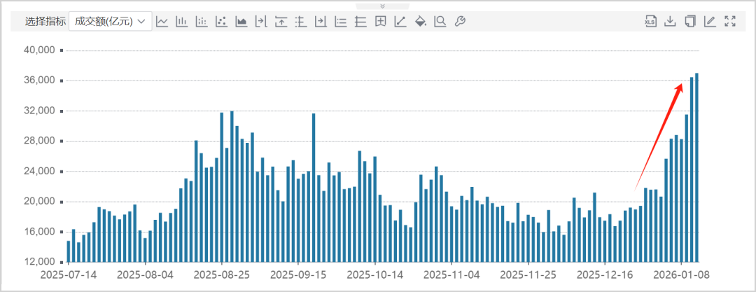 ▲A股大市成交额走势图,来源:Wind