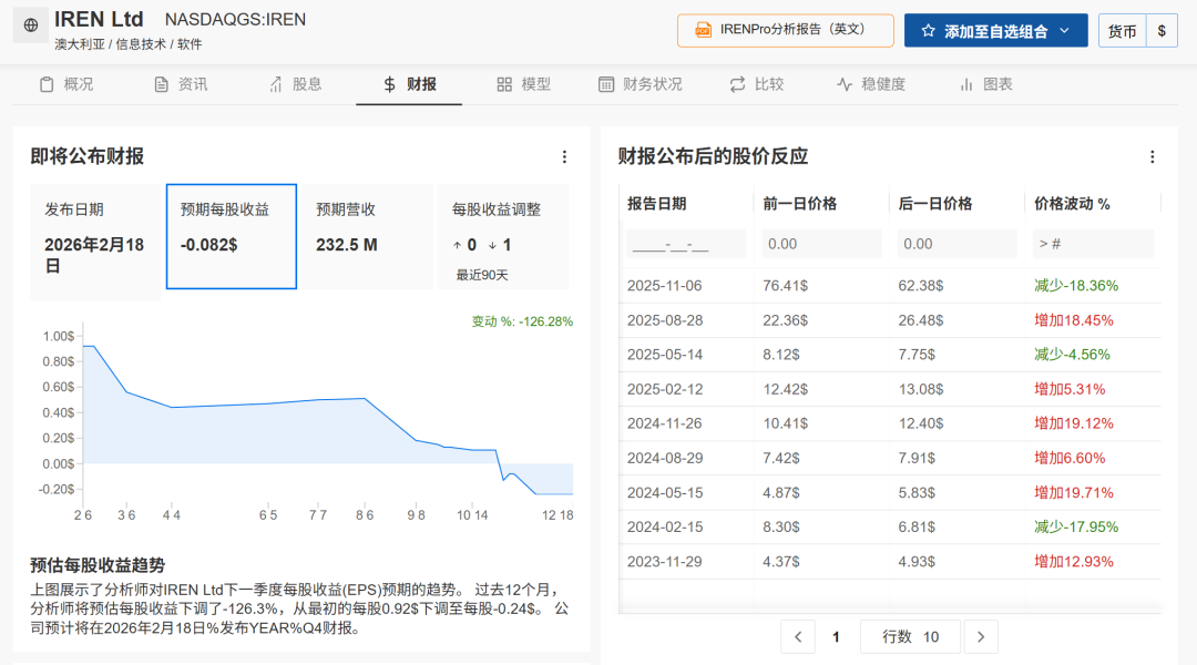 3. IREN财报发布日期: 2月18日预计每股收益增长: +113.7%(同比)预计营收增长: +104.8%(同比)