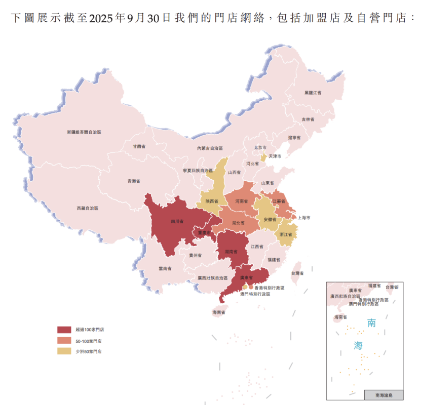 2015年起,钱大妈开放加盟,同年门店破100家,2018年突破1000家,还把门店开到了香港。2019年起,冯氏姐弟把生意进一步从华南地区拓展至华东及华中地区。招股书显示,截至2025年9月30日,钱大妈已开出2938家门店,覆盖14个省、直辖市及特别行政区,是中国最大的社区生鲜连锁企业。