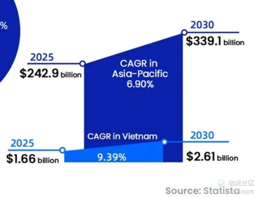 2023年,越南游戏市场收入达到12亿美元,较2022年增长25%。移动游戏是这一增长的主要驱动力,收入达8.4亿美元,占市场份额的70%(Newzoo,2023)。越南已成为东南亚游戏市场的领头羊,占据该地区游戏总收入的39%。