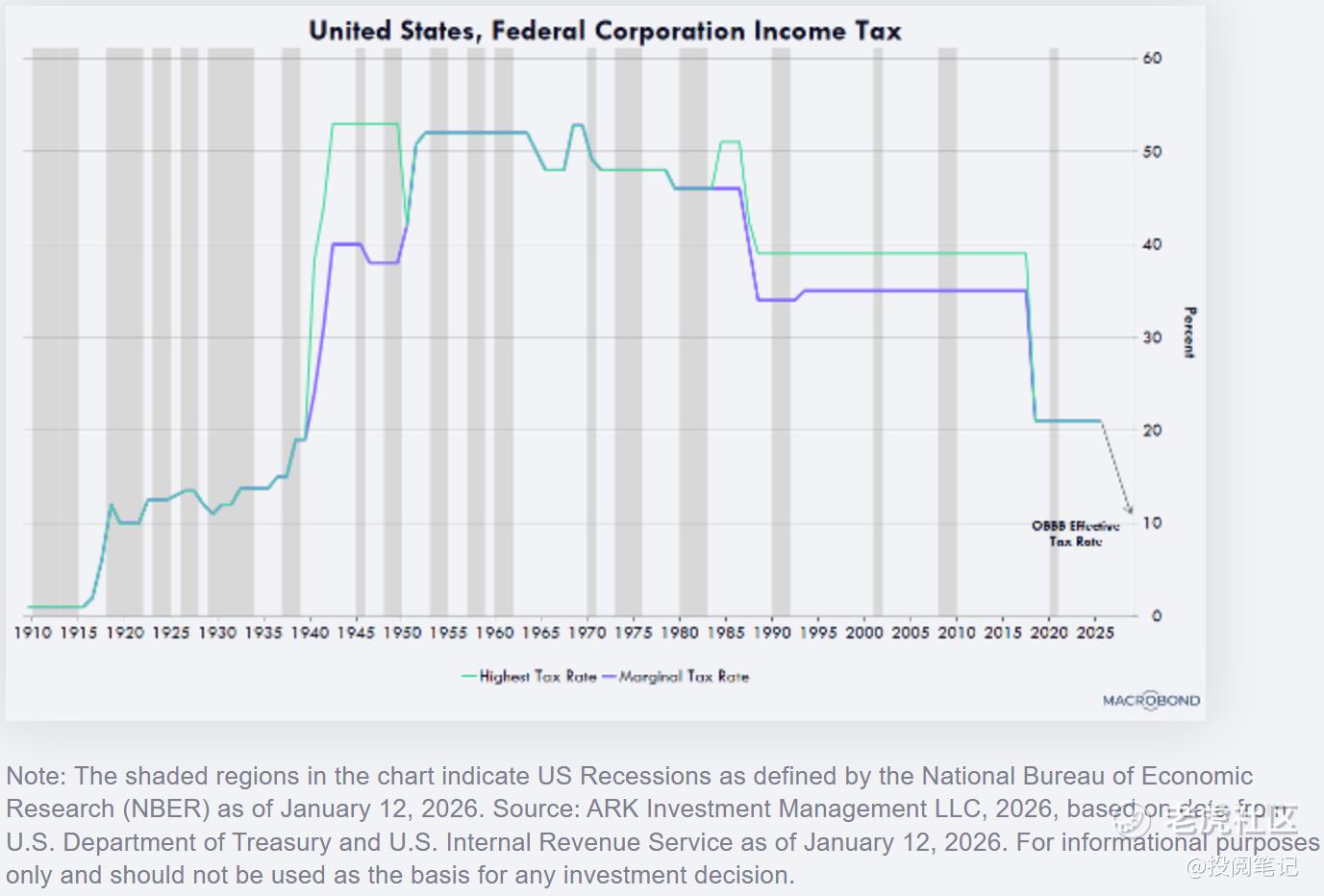 得益于放松管制与减税(含关税减免)、通胀及利率的协同效应,过去几年困扰美国的周期性衰退可能在明年及之后迅速逆转。放松管制正释放各行业的创新活力,其中以人工智能和加密货币沙皇大卫·萨克斯在人工智能和数字资产领域的领导最为突出。与此同时,小费、加班费及社保税的减免将在本季度为美国消费者带来可观退税,可能推动实际可支配收入增速从2025年下半年的年化约2%跃升至本季度的约8.3%。此外,企业退税将大幅增加——制造业设施、设备、软件及本土研发项目的加速折旧政策,将有效企业税率下压至10%左右(见下文),跻身全球最低税率之列。例如,任何在2028年底前启动美国制造设施建设的公司,都将享受建筑首年全额折旧优惠,而非按30至40年分期摊销。设备、软件及国内研发支出同样可享受首年100%折旧优惠——这项现金流利好政策已通过去年预算法案实现永久化,并追溯至2025年1月1日生效。