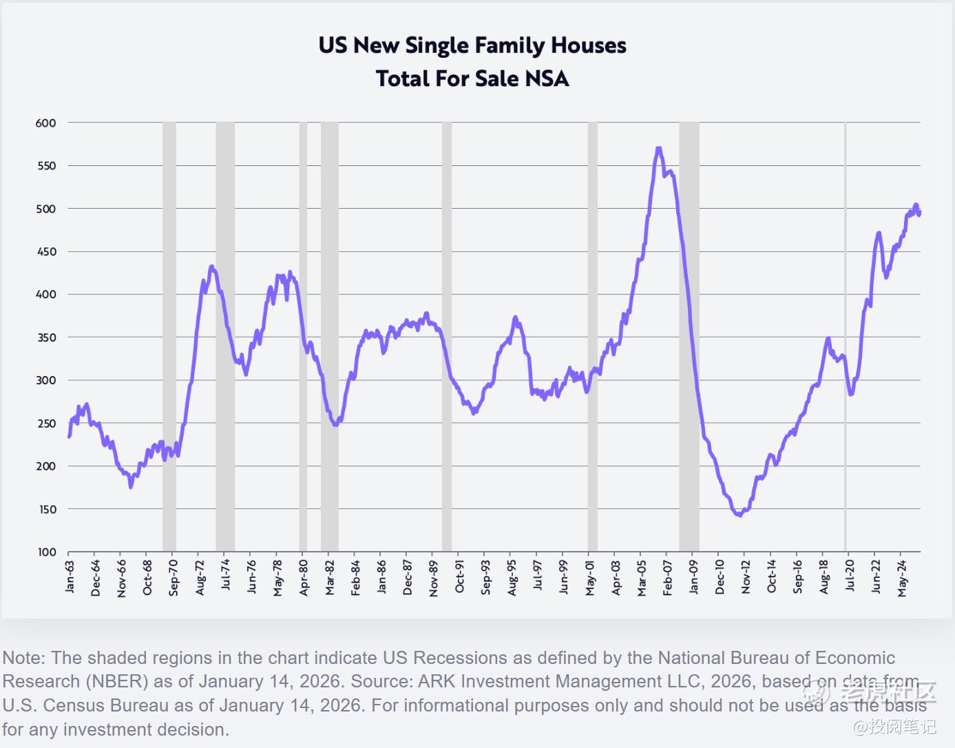 为消化逼近50万套的新建独栋住宅库存(该水平为2007年10月全球金融危机前所未见,详见下图),三大住宅建筑商在第四季度大幅下调售价:Lennar降价10%,KB Homes降价7%,D.R. Horton降价3%。这些降价将在未来几年延迟反映在CPI中。