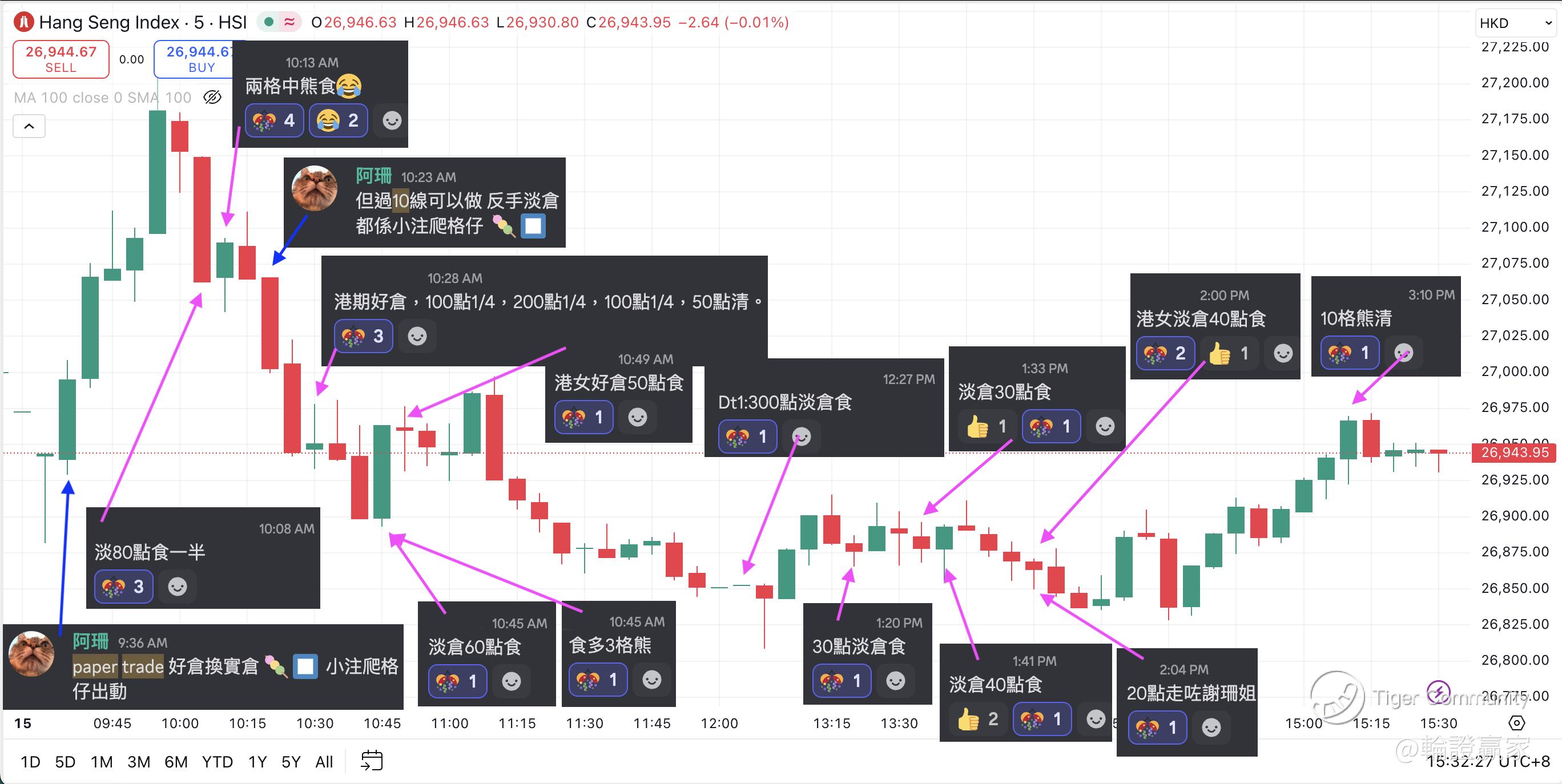 「会唔会又系上到27000点楼上之后,最后都系企唔到喺27000点收市架?!」咁呢个要4点收市后先知,依家9点42分,见 $HSI(HSI)$ 高开高走后回返落去今朝开市位,再穿埋,咁作战室都索性淡仓出去算。