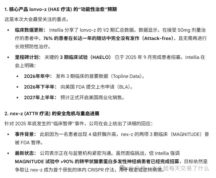 木头姐今天买入65万美元NTLA,除了周三没买,本周已连买3天。下面是我从其他方面得知的消息,还问了Gemini,不一定对,但是可以参考下。