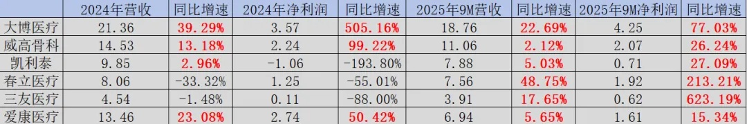 如果说2024年中国骨科企业业绩仍呈两极分化,那么2025年则是中国骨科业绩全面回暖的一年。在A股同花顺医疗耗材行业分类下,主营产品包含骨科相关业务的16家上市公司中,2025年前三季度有14家实现营收同比增长,11家实现净利润同比增长。