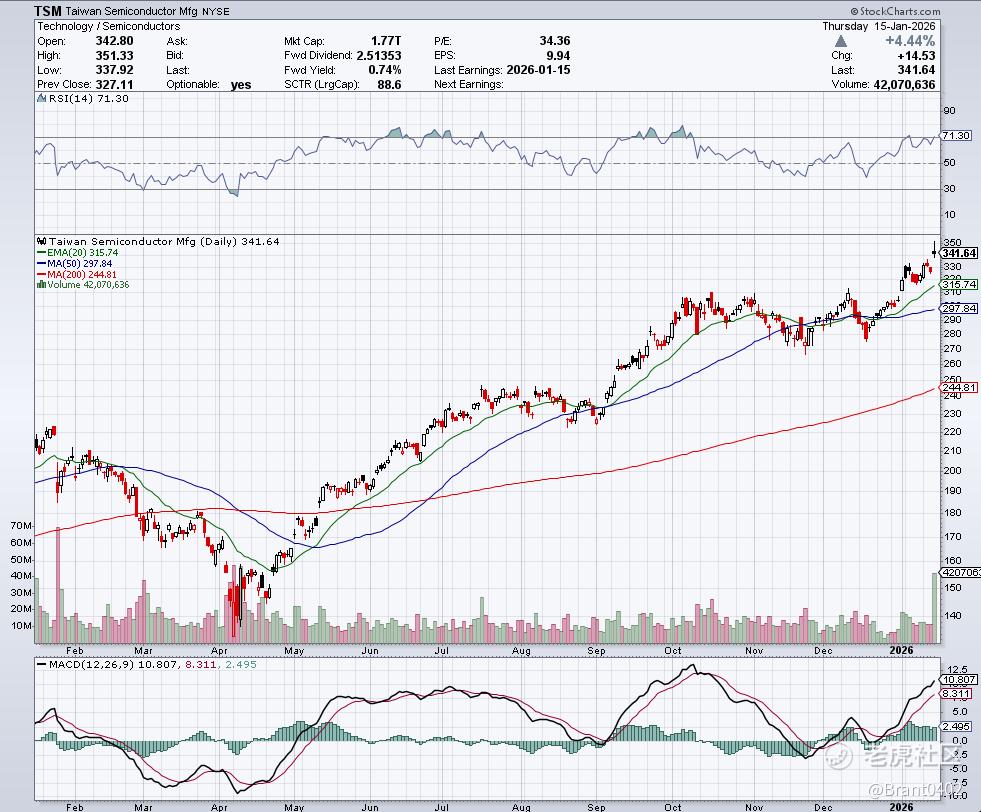 台积电(TSM)飙升4.44%,创52周新高,收报341.64美元