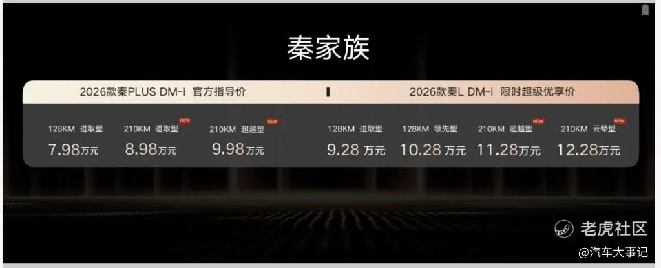 过去很长一段时间里,“大电池插混”几乎是中高端车型的专属标签。更大的电池,意味着更高的成本,也意味着更高的售价门槛。但在2026款秦宋家族身上,比亚迪显然选择了一条更激进的路线。
