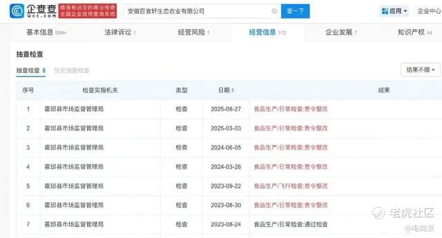 后者并非首次陷入争议。企查查APP显示,该食品委托商安徽百食轩生态农业有限公司成立于2019年5月,法定代表人为赵光星,注册资本2000万人民币,曾因过氧化值(以脂肪计)项目不符合要求,检验结论为不合格,被霍邱县市场监督管理局罚款1.5万元,没收违法所得220元。此外,该公司曾被霍邱县市场监督管理局多次责令整改。