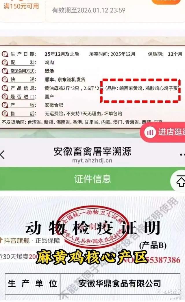 第一,暂未发现麻黄鸡养殖供应主体向该款大别山黄油母鸡的相关经营方供应过货源,双方无采购往来记录。该协会会长展示的与辉同行橱窗电商详情页上,该商品标注品种为“皖西麻黄鸡”。