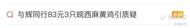 近日,“与辉同行83元3只皖西麻黄鸡引质疑”的话题冲上热搜,引发热议。