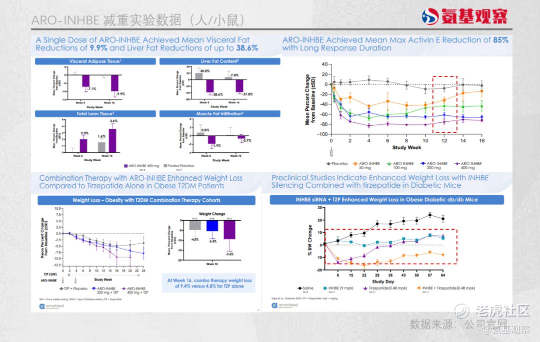 无论是INHBE还是ALK7,目前Arrowhead、Wave Life Sciences披露的人体数据都出现了一致的矛盾:减脂水平与减重效果脱钩。