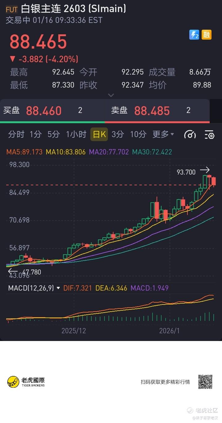 $白银主连 2603(SImain)$ 这个白银这个事很有意思,前段时间白银大涨就是因为东大全世界买,当需求被美国几家投行知道后,那些投行用“伦镍事件”相同的手法共同推高白银价格,让中国用高价购买,然后等中国需求差不多的时候(就是今天开始,要开启半年的下跌之路了),然后开始做空白银。后续这50%的跌幅可谓利润丰厚,因为白银有暴涨暴跌的属性。东大每次都会在不同的品种上吃亏,这次美国派出的堪称是美国正负左右手的摩根和高盛,上月他们就从纽约连夜将贵金属部门搬往新加坡了。目标对准的就是东大。$黄金主连 2506(GCmain)$  $道琼斯(.DJI)$  $标普500(.SPX)$