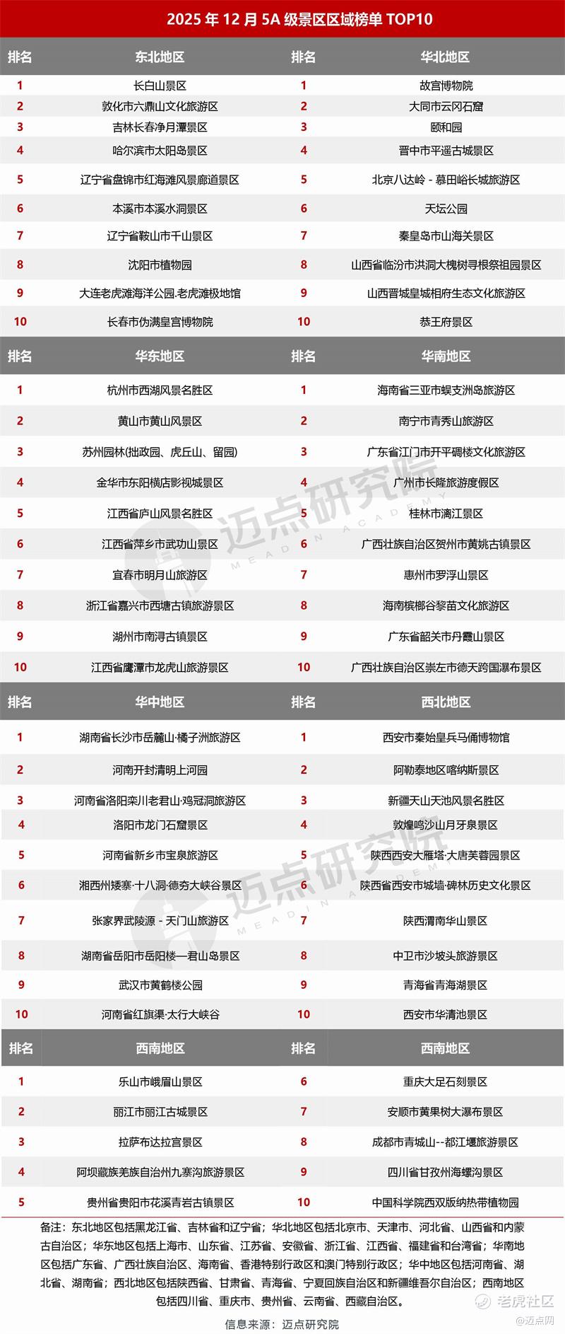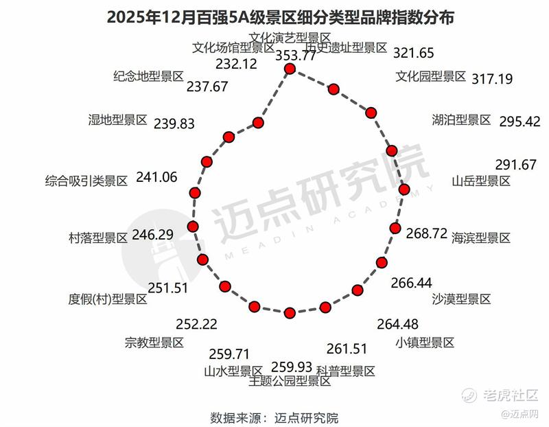 “2025年12月5A级景区品牌传播力100强榜单”数据来源于迈点品牌指数MBI,根据12月迈点品牌指数MBI的358家景区数据汇总统计而成。具体说明如下: