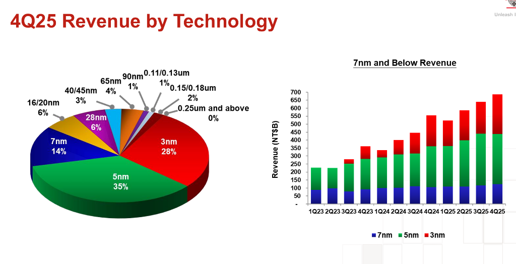 各个制程情况:3nm占收入28%,5nm为35%,7nm为14%,先进制程共占77%,环比提升3pct;