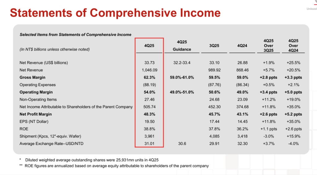 台积电25Q4财报点评:继续超预期,全球硅基产业核心