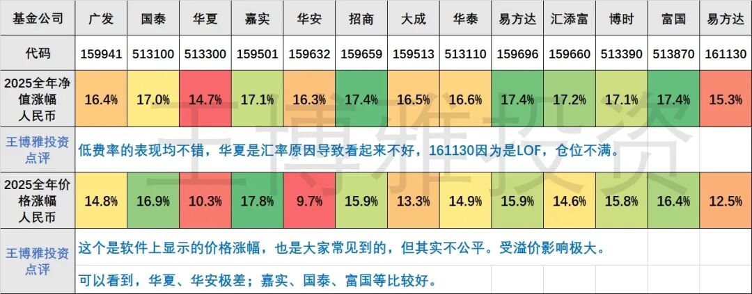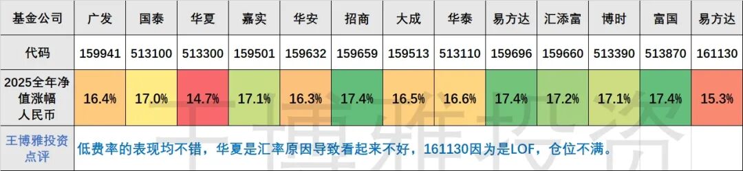 2025年场内13支纳指基金年度收益点评
