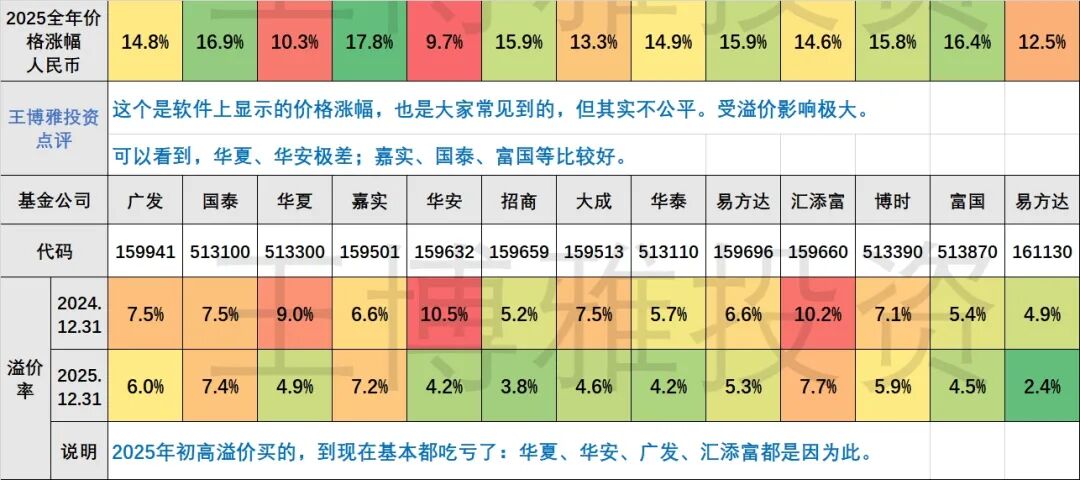比如华安159632,年初溢价10.5%,现在溢价4.2%,直接吃掉6%的收益。这就是为什么今年价格涨幅只有10%!