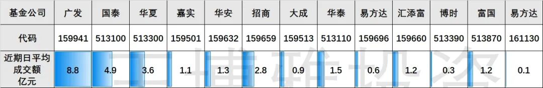 第四档:15%左右,广发159941,华泰513110,汇添富159660。