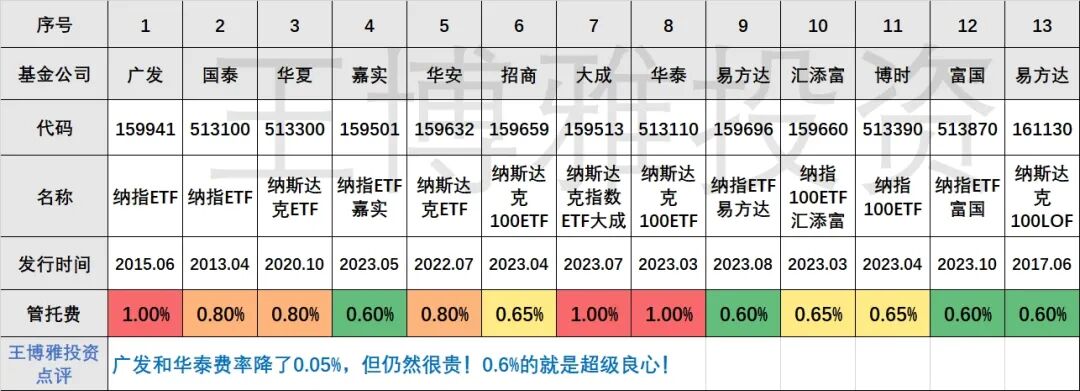 不同纳指ETF基金的运行费率差异不小。