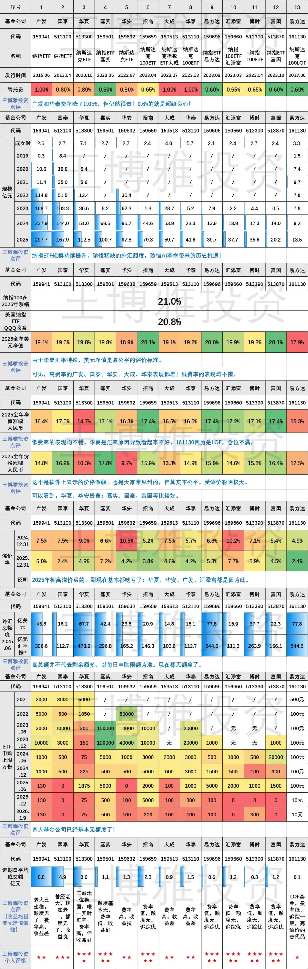 (1)广发159941⭐⭐:它靠着发的早以及额度够,稳稳占据了规模和流动性的第一位。广发的纳指ETF2023年表现中等偏下,2024年表现良好,2025年表现较差。总得来看,高费率就是不行,投资人获得的收益就是少了!