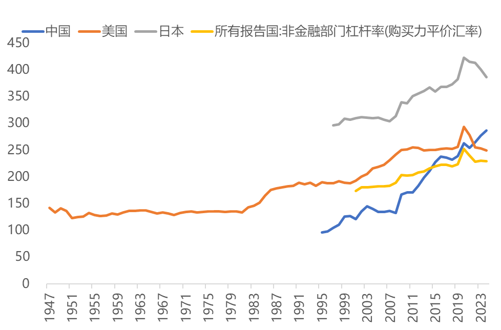 从发达国家的案例看,步入深度老龄化(65岁及以上人口超过总人口14%)后,GDP的增速一般都降至2%左右,我国是2021年步入深度老龄化的,但2021年至今,GDP增速仍维持在5%左右,这主要靠投资拉动。但投资拉动的代价是全社会债务水平加速上升,如今我国的宏观杠杆率水平已经超过美国,也超过了发达国家的平均水平,且疫情后不降反升。