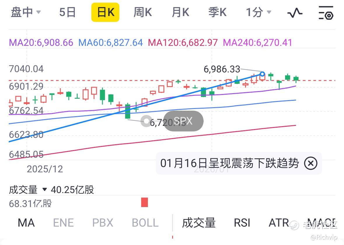 近十个交易日,SPX在6950-6980区间形成强磁吸效应,1月16日更是以-0.07%的微幅波动收盘,多空博弈陷入胶着——这种“无明确趋势的震荡市”,正是期权策略者收取权利金的理想战场。