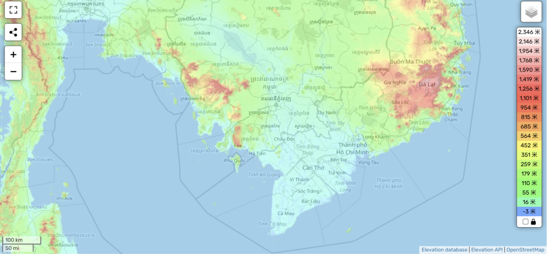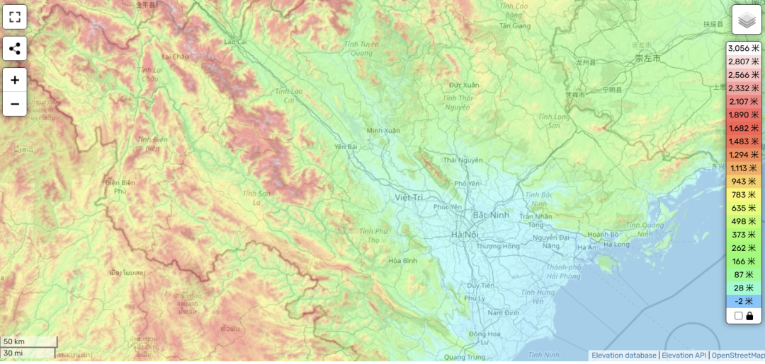 河内的地形图,西北高而东南低,河内本身就是一个红河下游形成的类似冲积平原。