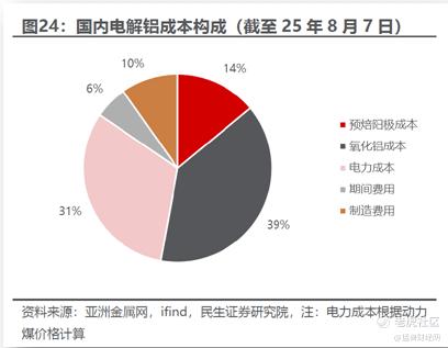 氧化铝作为电解铝生产过程中的重要原料,根据第三方机构的测算,行业视角下其在电解铝生产环节中的成本占比约为39%,而目前宏创控股配套的氧化铝产能达到1900万吨,实现了权益自给率超过100%的目标,这就意味着公司可以有效避免氧化铝价格波动带来的成本风险。另外,电解铝作为高耗能行业,其生产环节里电力成本也是一大支出,据测算其成本占比在31%左右,系第二大成本项。