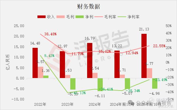 净利分别约为人民币1.36亿、-5.33亿、-6.11亿、-5.07亿、-4.96亿,2025年前10月同比-2.07%;