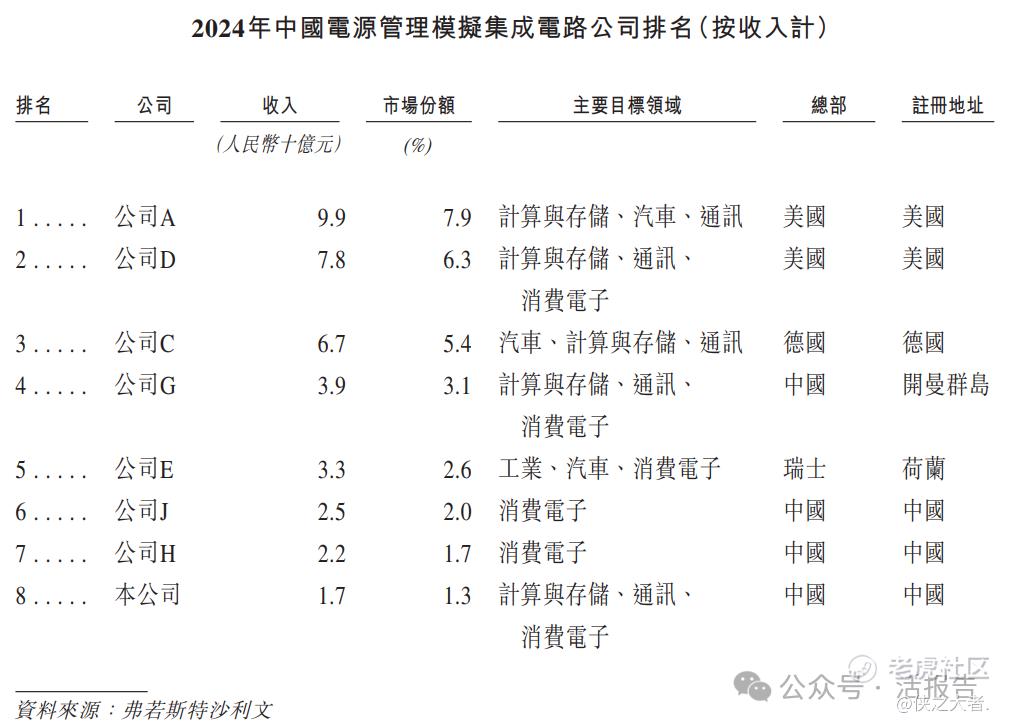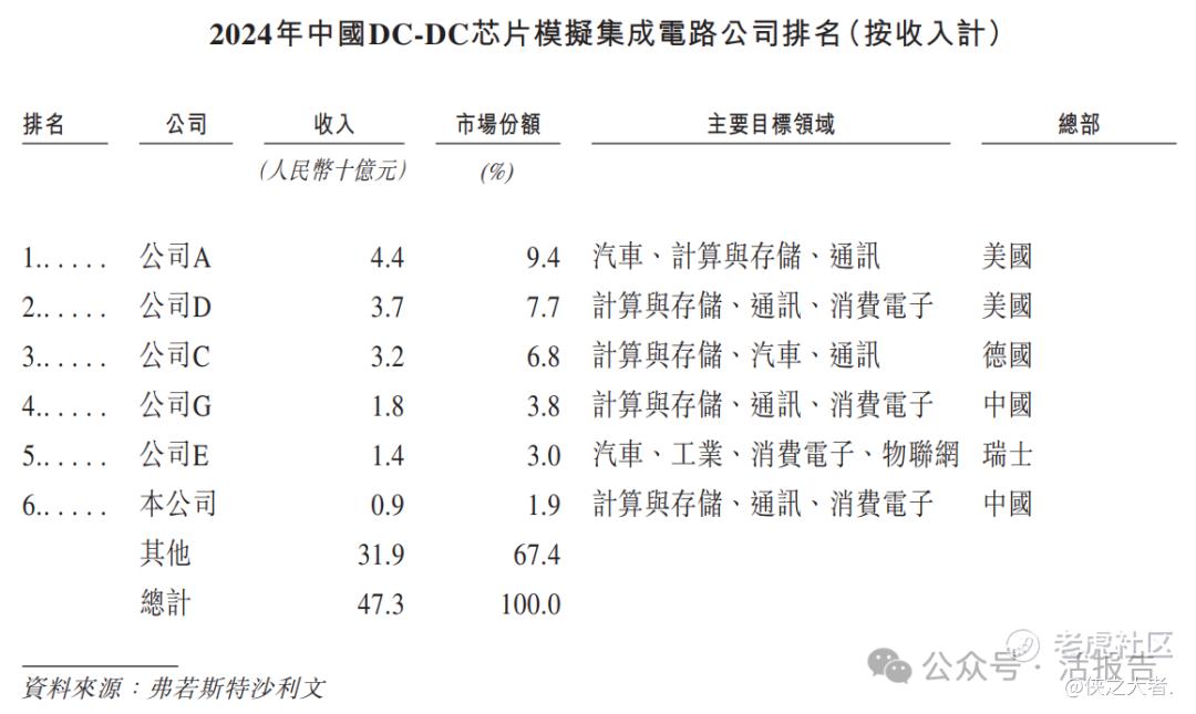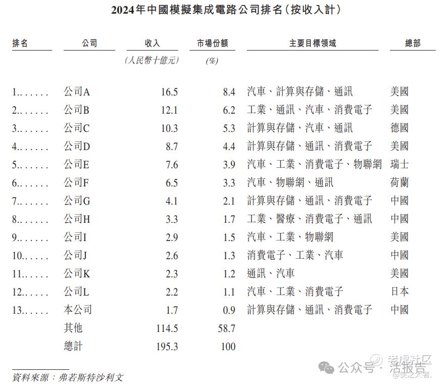 2024年,中国模拟集成电路产业呈现出相对稳定和高度分散的竞争格局,前十三名公司合计占据41.3%的市场份额。其中,公司在市场上排名第十三,在中国本土企业中排名第四。