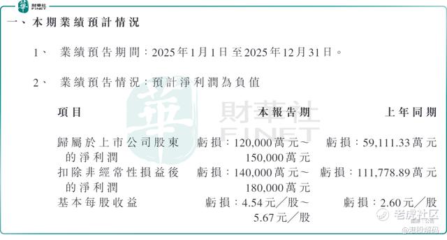 而此前的业绩公告显示,2025年前三季度,公司归母净利润亏损4.19亿元,据此推算,第四季度单季亏损金额约为7.81亿元至10.81亿元。