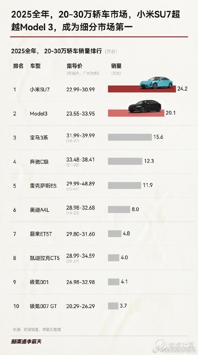 小米SU7干翻Model 3,20-30万轿车市场彻底变天