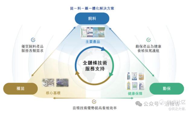 公司通过涵盖饲料、种苗与动保的整套产品与服务,全面满足养殖业领域的各种需求,基于严格研发提供专业化产品,并为本土化养殖及运营效率提供深度支持。